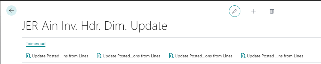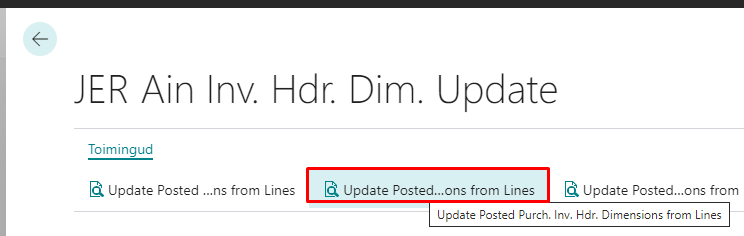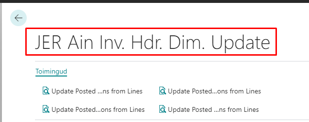 (Fujitsu siseseks kasutamiseks) Loodud dimensioonide korrigeerimise funktsionaalsus „JER Ain Inv. Hdr. Dim.Update“