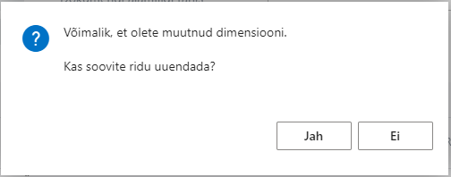 Kui dimensioone muudate, siis saate järgneva teate:
