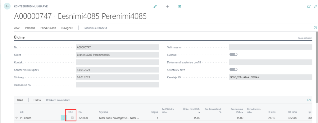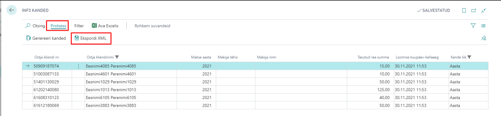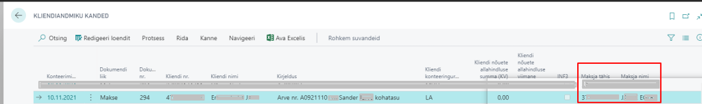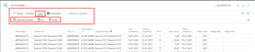 Laekumiste sidumisel maksete sobitamise žurnaalis, lisatakse kliendiandmiku kannetele maksja nimi ja isikukood, see on INF3 aruande koostamise aluseks.