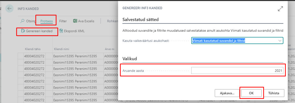 INF3 aruande koostamiseks otsi INF3 ja aruande saad genereerida “INF3 kanded” alt