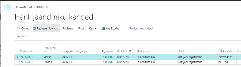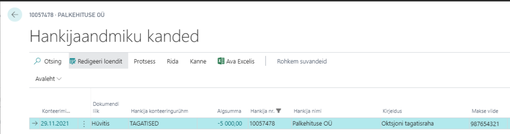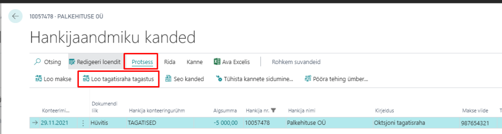 Liigu hankijaandmiku kannetesse, kus “Protsess” vahelehel on Nupp “Loo tagatisraha tagastus”