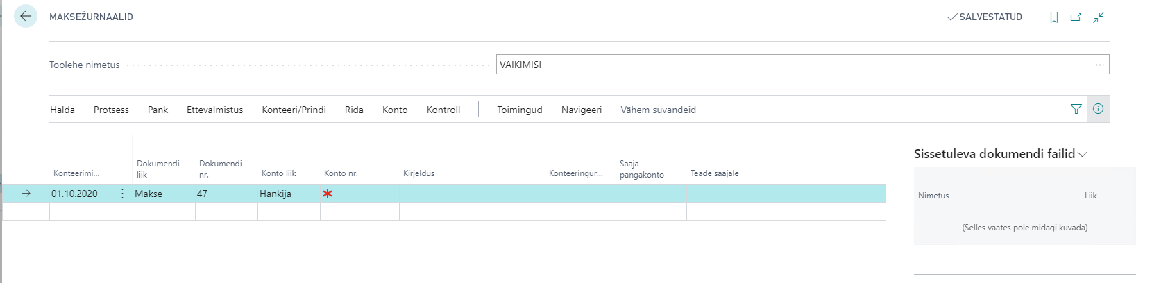 Nii kui ostužurnaal on sisestatud, saame määrata see toetuse tasumiseks. Selleks kirjuta otsingusse: „Maksežurnaalid“.